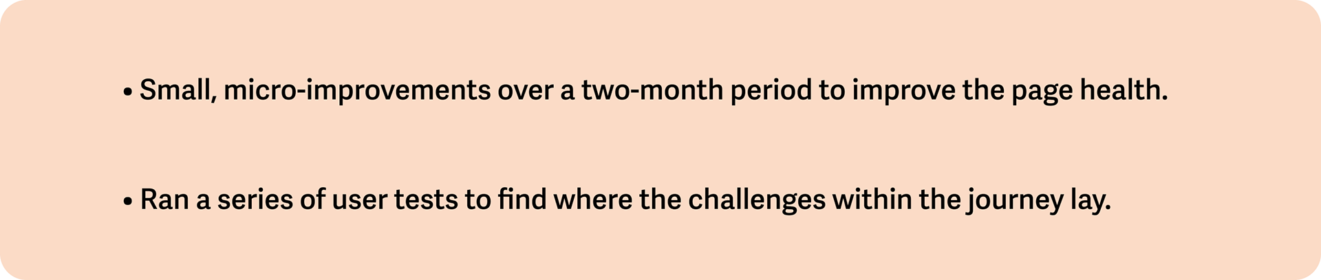 I reviewed the underperforming page to check for obvious issues. I then validated these with user-testing.